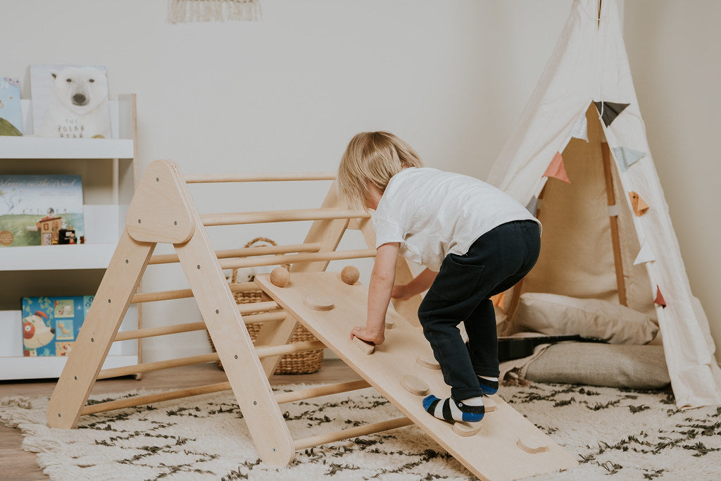 Forbedrer balanse og motorikk: La barnet ditt utvikle sine motoriske ferdigheter på en trygg og gøy måte mens det utforsker Pikler trekanten.