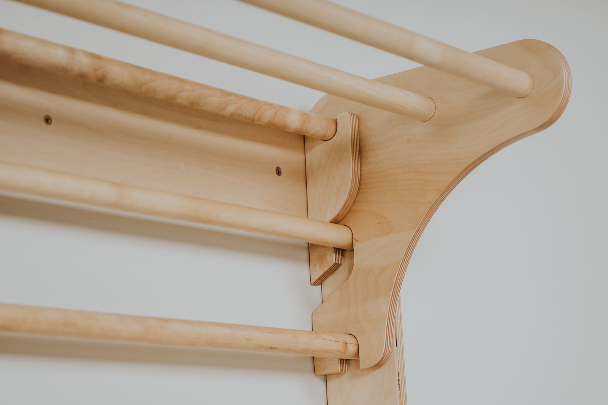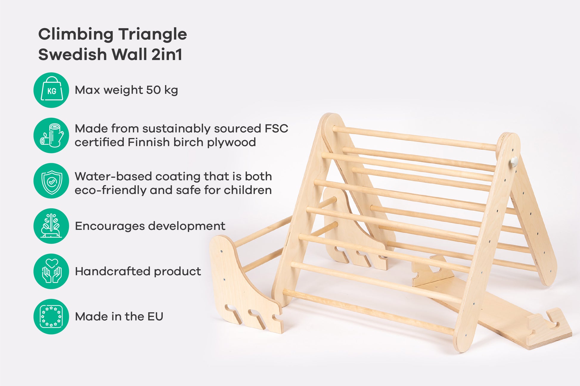 Miljøvennlig produkt: Laget av bærekraftig finsk kryssfiner, er Pikler Triangle en holdbar og miljøbevisst investering i ditt barns fremtid.