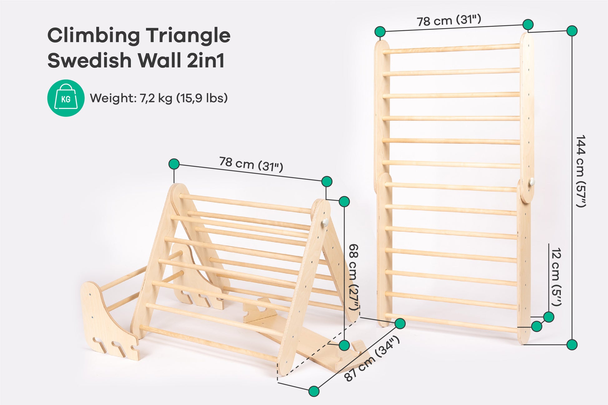 2-i-1 Ribbevegg & Pikler Triangle m/klatrebrett